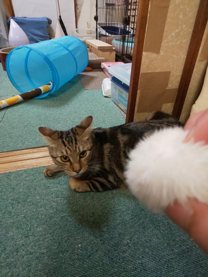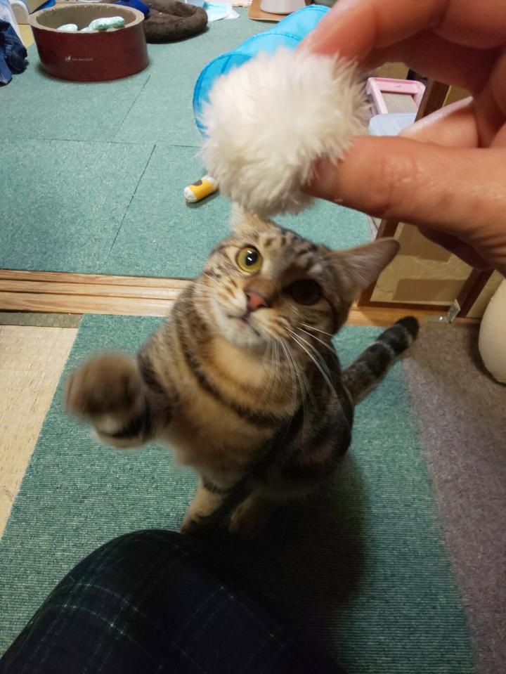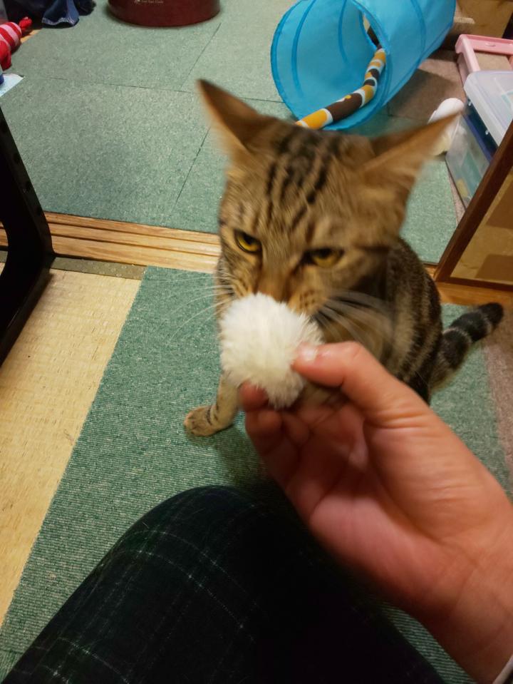 何度か投げる振りして焦らす私とチャム君