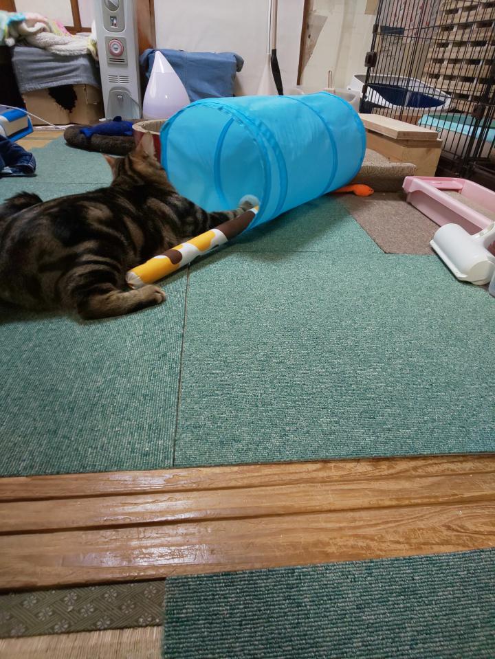 トンネルも使って遊びを広げるチャム君