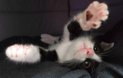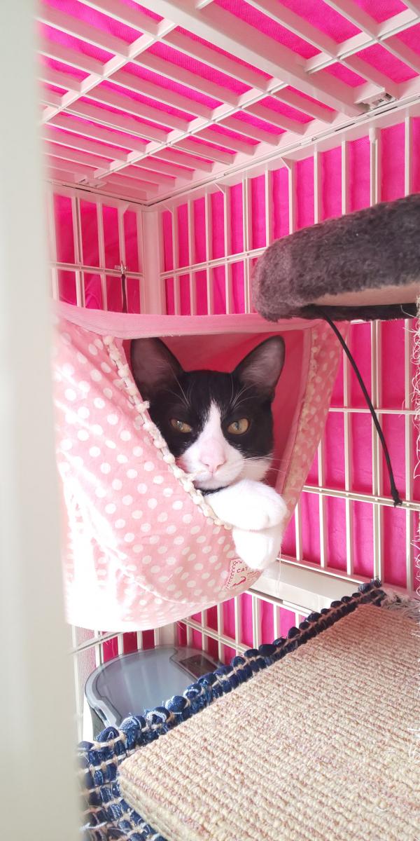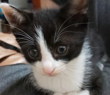 サンくんの前にも、生後1ヶ月の黒猫を保護し、その子はかかりつけの動物病院の看護師さんが一目惚れして貰われて行きました。
