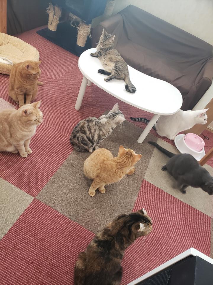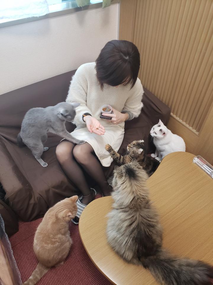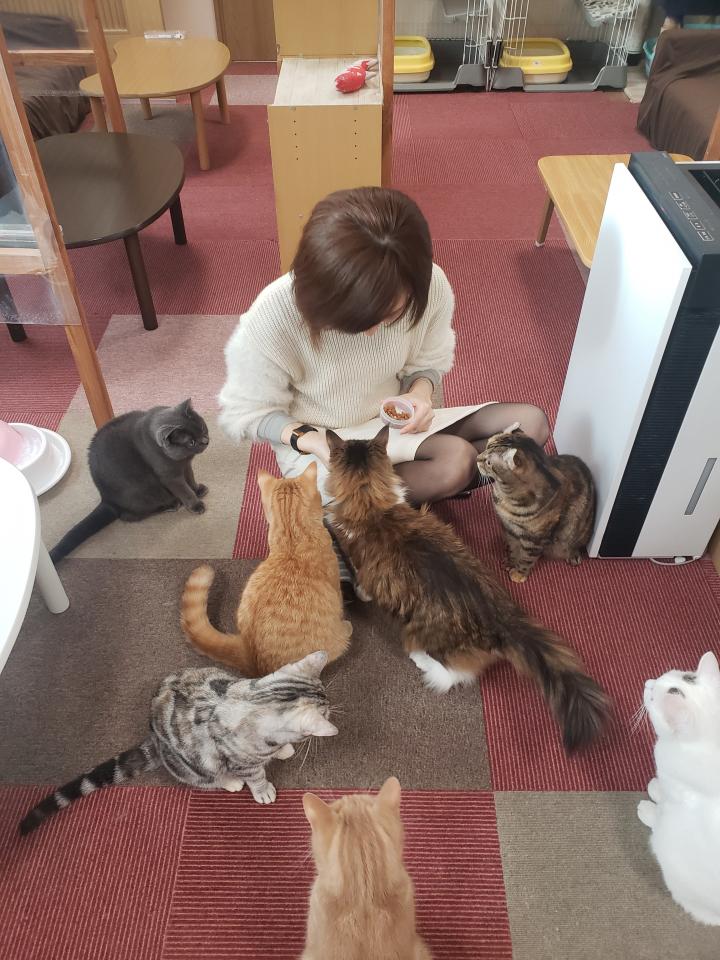 たくさんの猫に囲まれて。