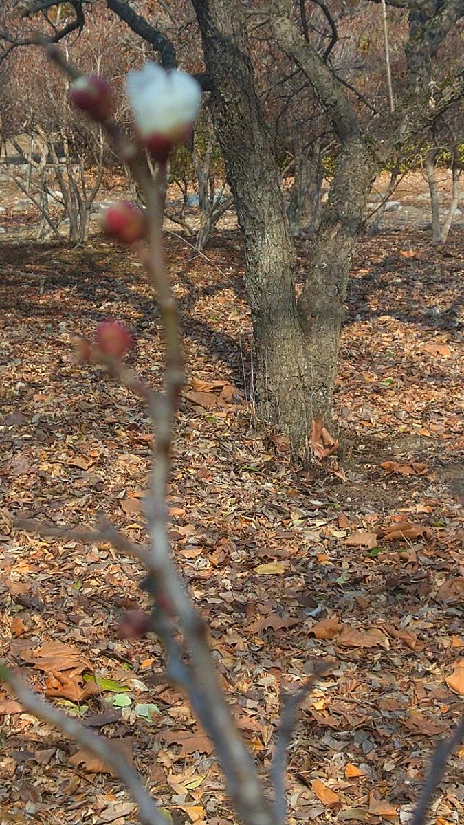 折角、梅の花が咲きそうだったのに、季節は一歩後退。
