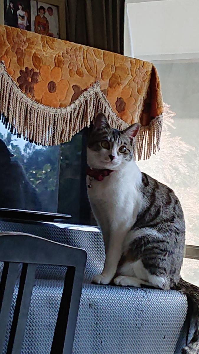 6月4日(水) 今日は朝からもがいい。 雨の日はお姉ちゃんのベッドを拝借して朝からお休みしているのだが、今日はいつものピアノの上で、前の道路を走る車を眺めるリンちゃんでした。
