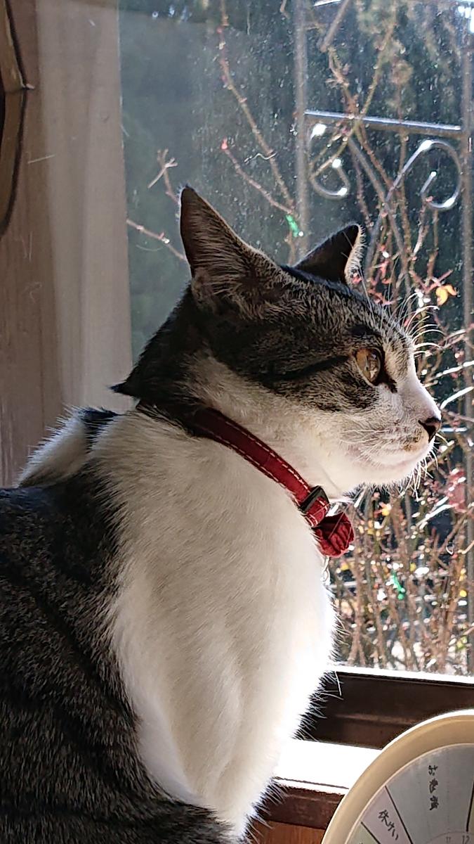 5月15日(木)曇り 今日は天気が悪くなるのだろうか。 少し前まで日がさしていたのだが。 いつものとおり、狭いサッシの隙間から外の様子をうかがうリンちゃんでした。
