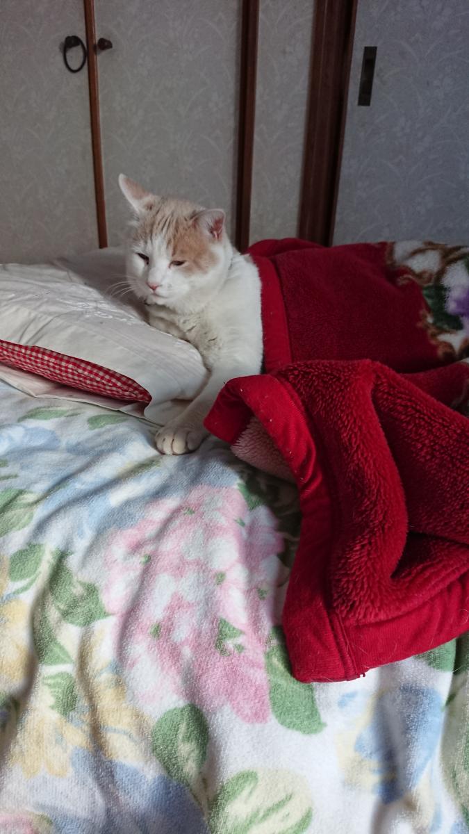 娘~もらったベッドに、寝ようとしたら猫ちゃんが占領してた😃