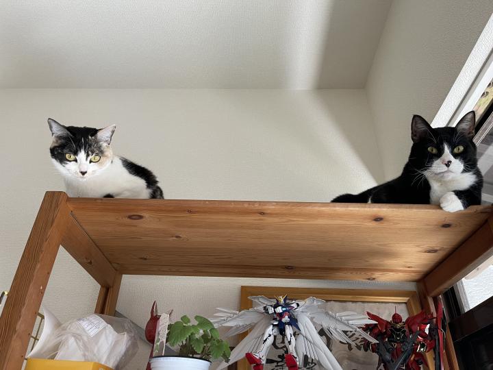 上から見る我が家の狛犬ならぬ…門番とガンダムW &シナンジュ😗