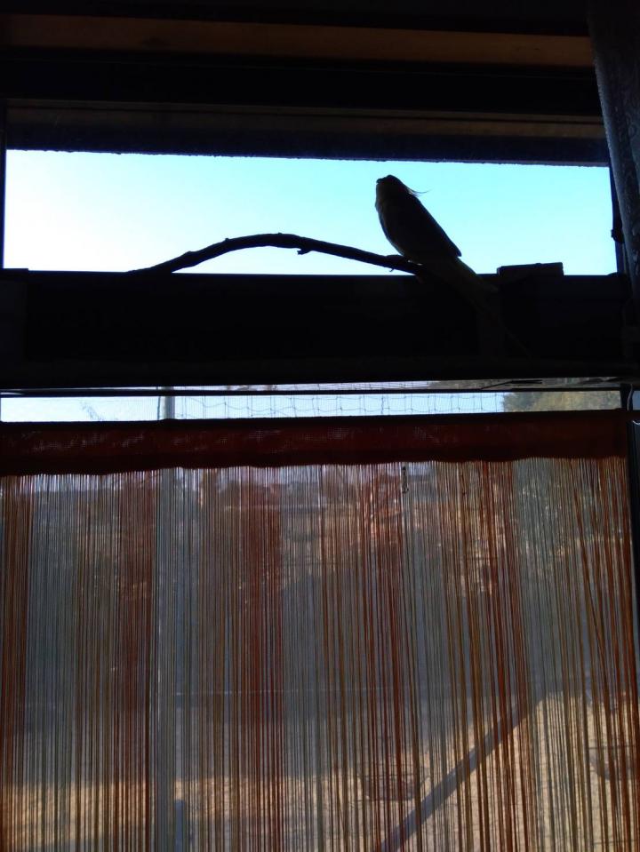 毎朝の放鳥タイム、世羽もいつも窓際で待っています。