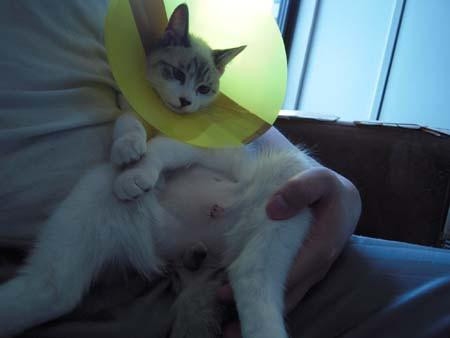 そのため、一般的なオスの去勢手術とは違い、内タマを取り出すためにおなかを開く必要がありました。