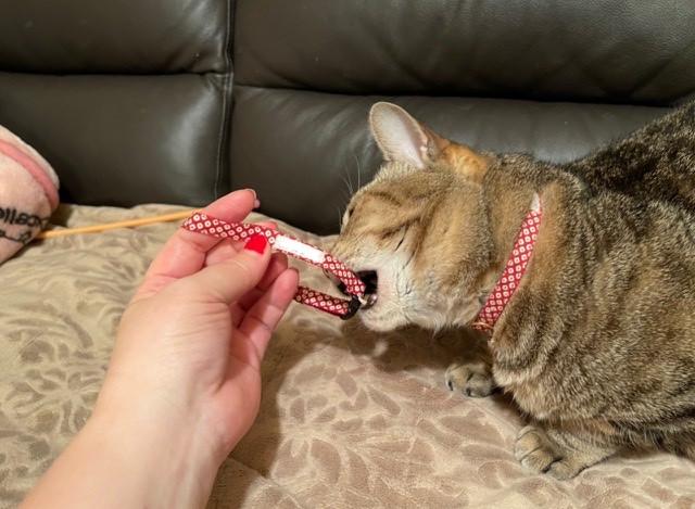 お、おニュー‼︎ よく見せて〜。ガジガジ。