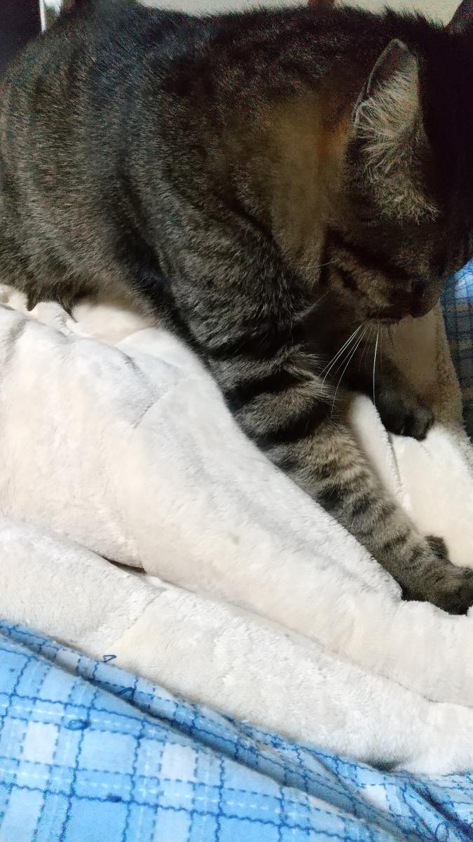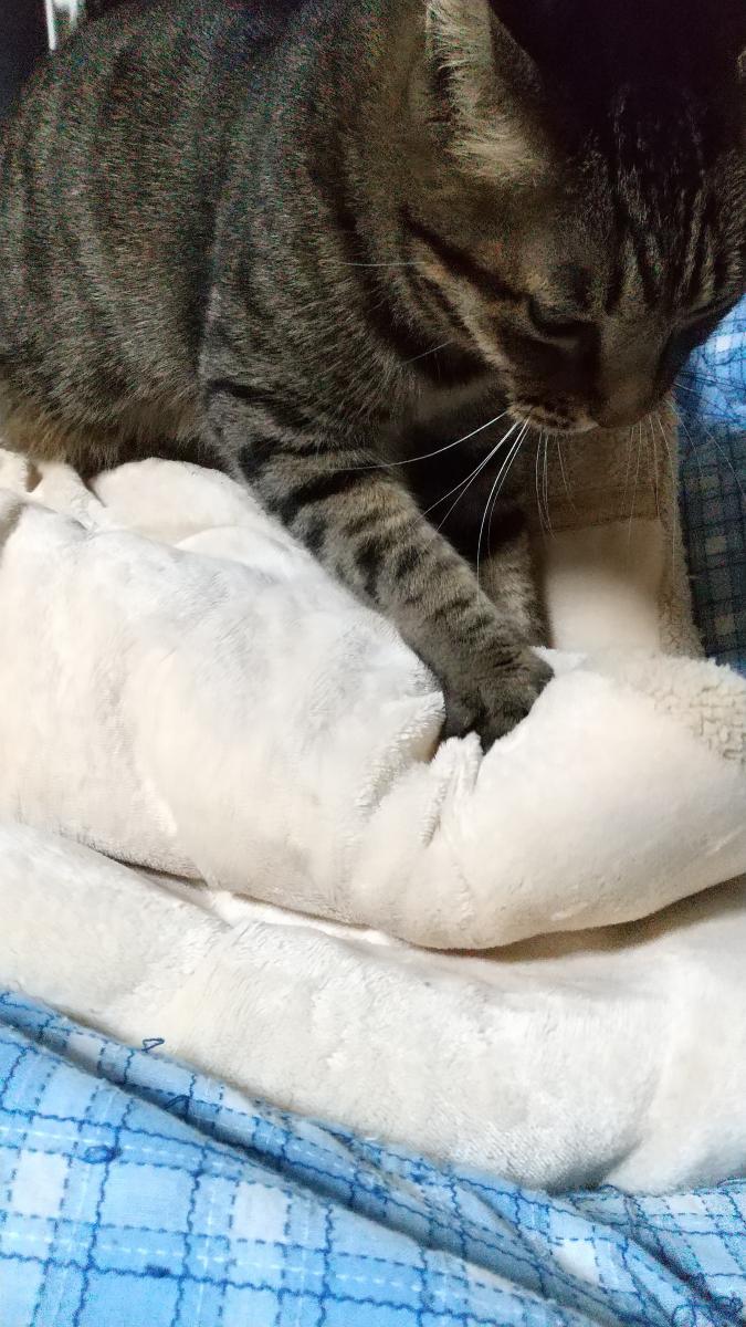 最近私が仰向けになっているとお腹や胸や布団の上でふみふみするようになりました
