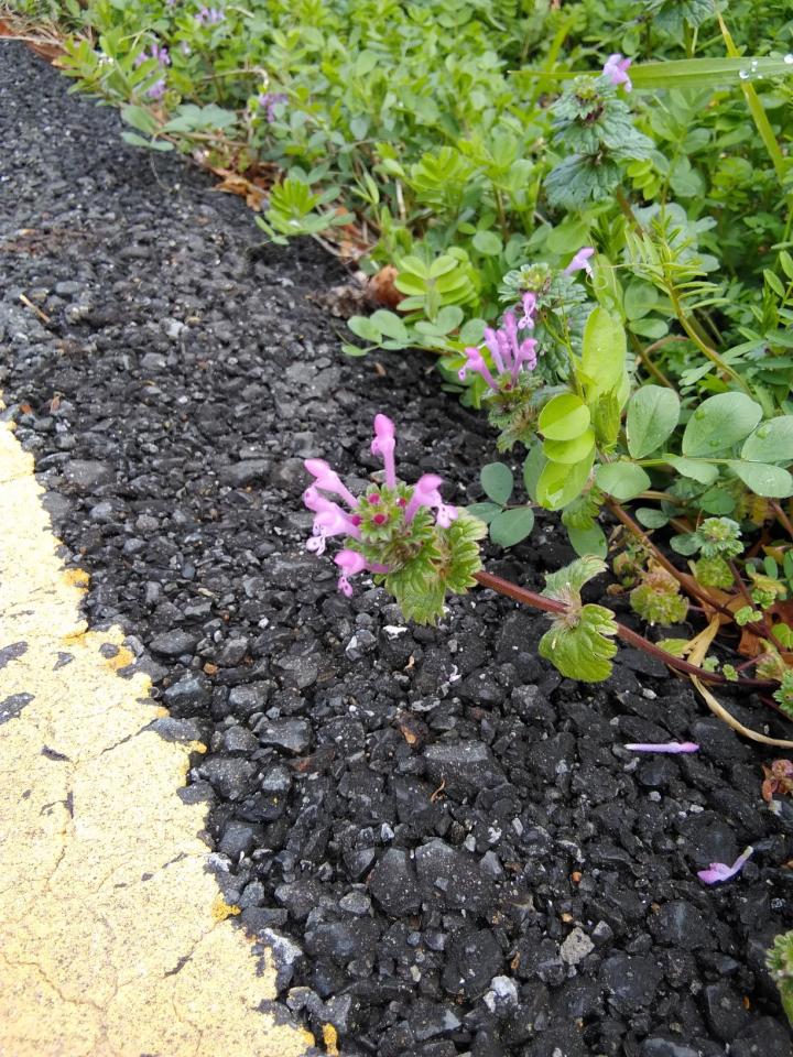植物だそうです。アスファルトの駐車場、すみっこで咲いて