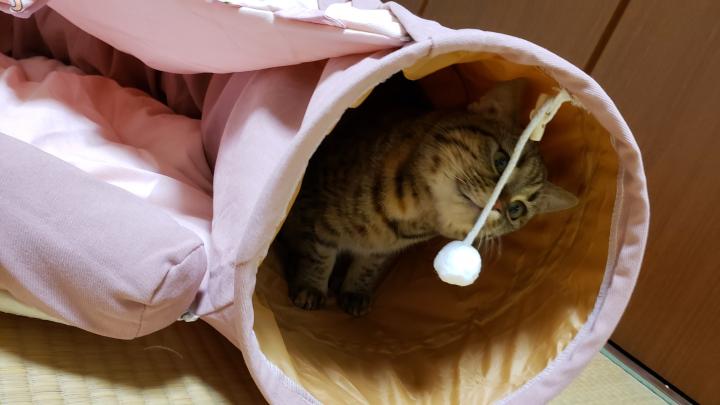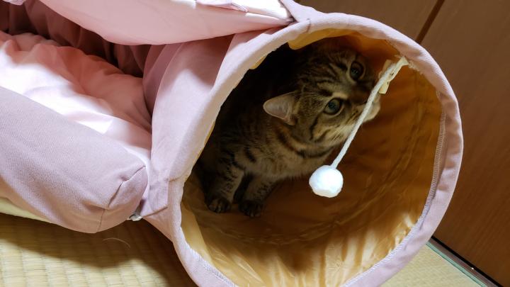 トンネルは何か中国語が書いてあって、色も含めて、だいぶパパのイメージと違ったみたい...🙀