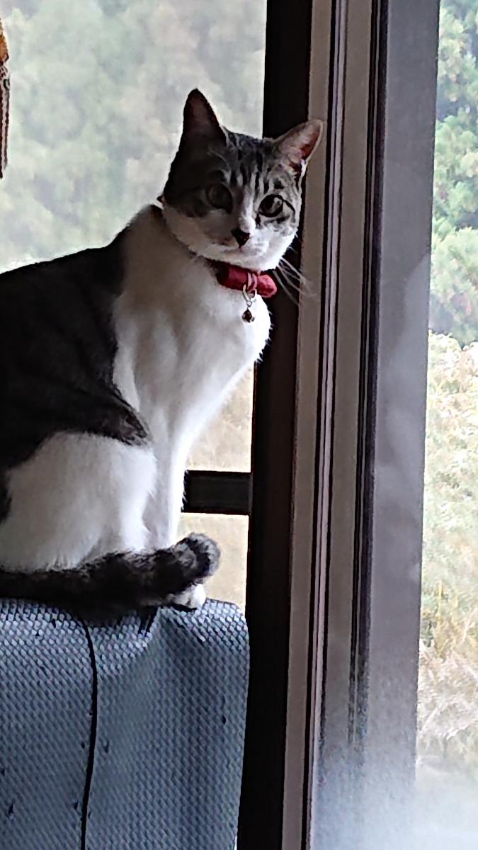 6月4日(水) 今日は朝からもがいい。 雨の日はお姉ちゃんのベッドを拝借して朝からお休みしているのだが、今日はいつものピアノの上で、前の道路を走る車を眺めるリンちゃんでした。