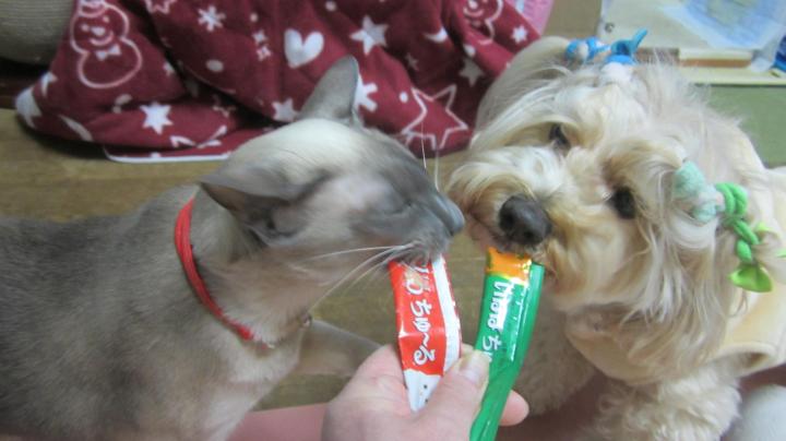 それから、今日お留守番をしていたルビィ😻と大五郎🐶に ちゅーるをあげました。