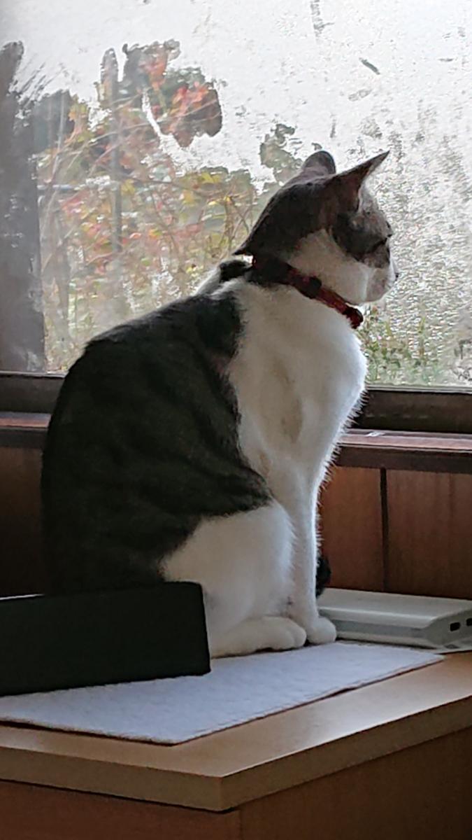 5月15日(木)曇り 今日は天気が悪くなるのだろうか。 少し前まで日がさしていたのだが。 いつものとおり、狭いサッシの隙間から外の様子をうかがうリンちゃんでした。