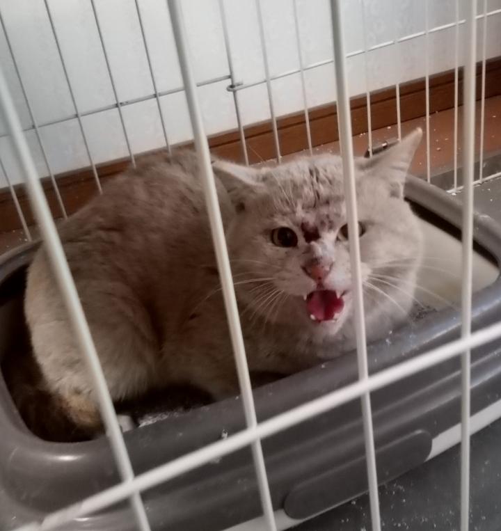 福ちゃんの次の日に保護した猫きじたろうも福ちゃんと同じで捕獲器をでようとしてオデコに傷を負いました 福ちゃんほどではないですがヅツキする猫が続けて保護されたのです