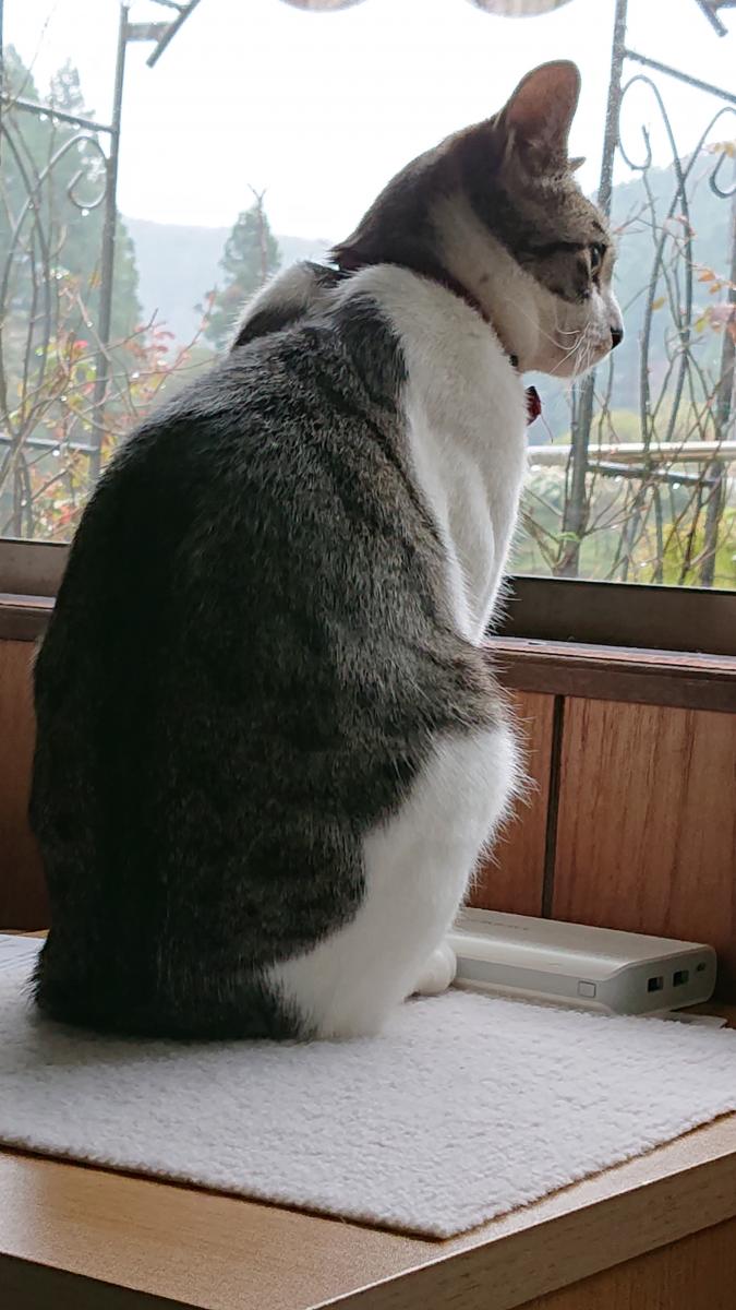 6月4日(水) 今日は朝からもがいい。 雨の日はお姉ちゃんのベッドを拝借して朝からお休みしているのだが、今日はいつものピアノの上で、前の道路を走る車を眺めるリンちゃんでした。