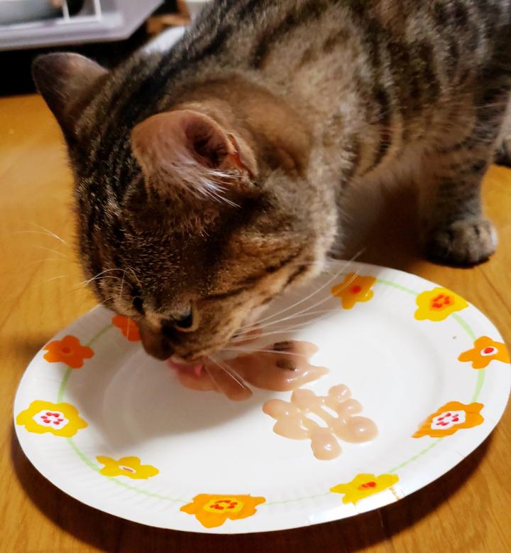 パパ、ちゅーるを1回で使いきれなかったらしくて、また絵を描き始めました🐱