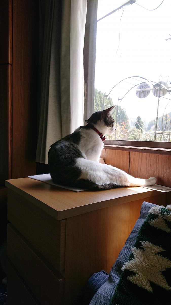 6月4日(水) 今日は朝からもがいい。 雨の日はお姉ちゃんのベッドを拝借して朝からお休みしているのだが、今日はいつものピアノの上で、前の道路を走る車を眺めるリンちゃんでした。