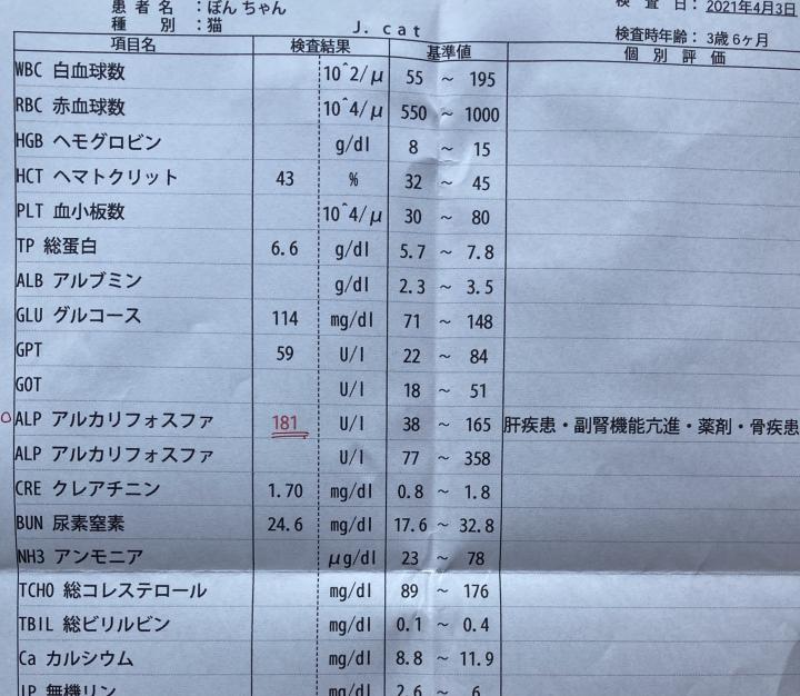 今のところ『ぼん』に関しては治療らしい治療をしていなくて腎臓病用フードだけで数値も落ち着いているのでこのまま