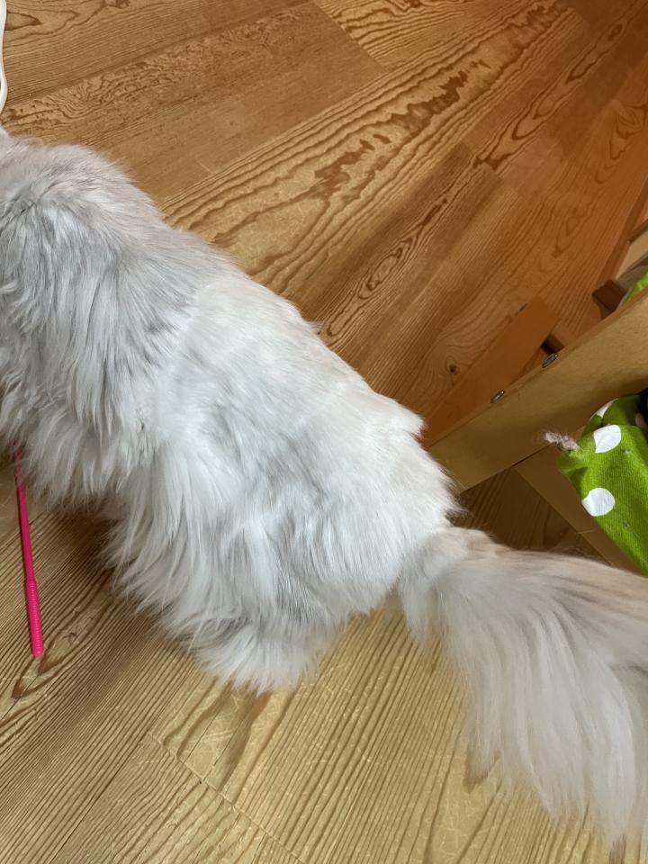 画像で見た時はそうでもなかったけど、実際見てみたら毛玉は思った以上に背中からお尻にかけてフェルト状態で、足の付け根や脇部分もガッツリ大きめマシュマロ大のフェルト毛玉。