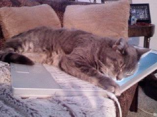ママは、お買い物~~。ホッピー君は大好きなラップトップの上でお昼ね~。