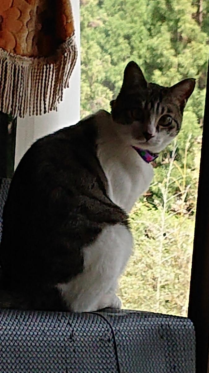 5月15日(木)曇り 今日は天気が悪くなるのだろうか。 少し前まで日がさしていたのだが。 いつものとおり、狭いサッシの隙間から外の様子をうかがうリンちゃんでした。