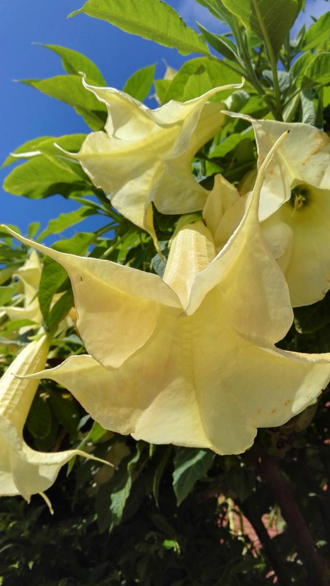 近所で咲いていたエンゼルストランペット…毒ありだそうです