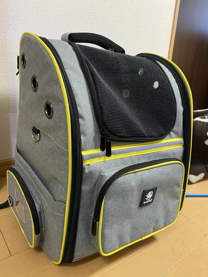 ケージの前でゴロゴロ甘えてた所に準備しておいた洗濯ネットをサッと被せ、なんとかそのままチャックに成功!すぐさまキャリーにイン!