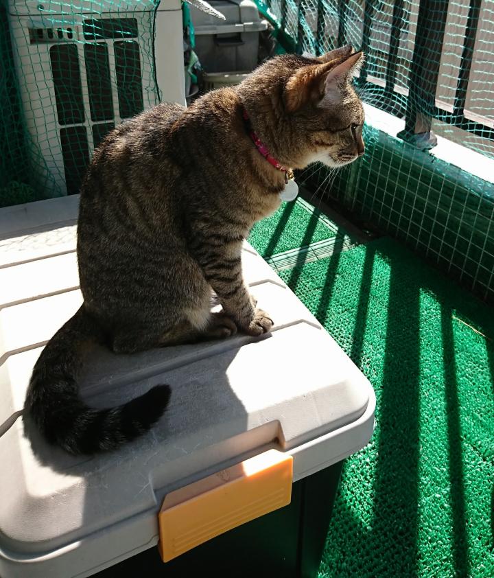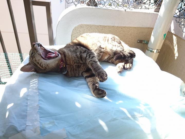 ベランダで、気持ち良く日向ぼっこして