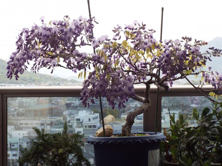 香川県に移り住んで7年目(2021年)、フジの植木鉢も一回り大きくし枝も切り詰めました。30年以上生きてきたフジ、何歳まで生きられるかわからなくなりました。枝芽があまり出なくなり、ほとんどが花芽!!花が終われば葉はいくらか茂りますが、枝やつるはほとんど伸びてきません。すっかり老木の仲間入りをしました!! 人と同じように、老いたらもう大きくはならないのかな??でも、そのわりにはいつまでも綺麗な花を咲かせている。