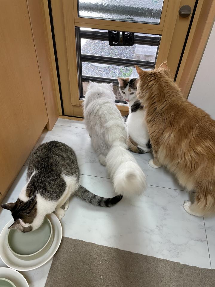 12歳の茶太郎(ノルウェージャン)を筆頭にそろそろ4歳組のしじみ&みくり兄妹(mix)とぐーすけ(ペルシャチンチラシルバー)、3歳の不思議女子やまと嬢と、もう少しでも2歳のもちょみ&大体一歳半のこてつ...