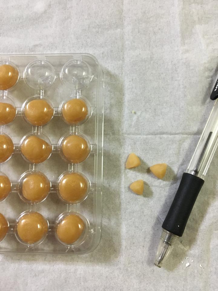 大きめだと噛み砕こうとされちゃう→薬入りなのがバレるから、分けて小さく。