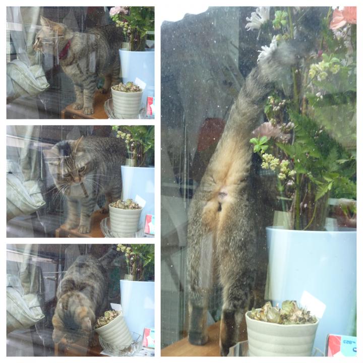 私の車の下で一休みする時は、手が届きそうで届かない絶妙な位置取り