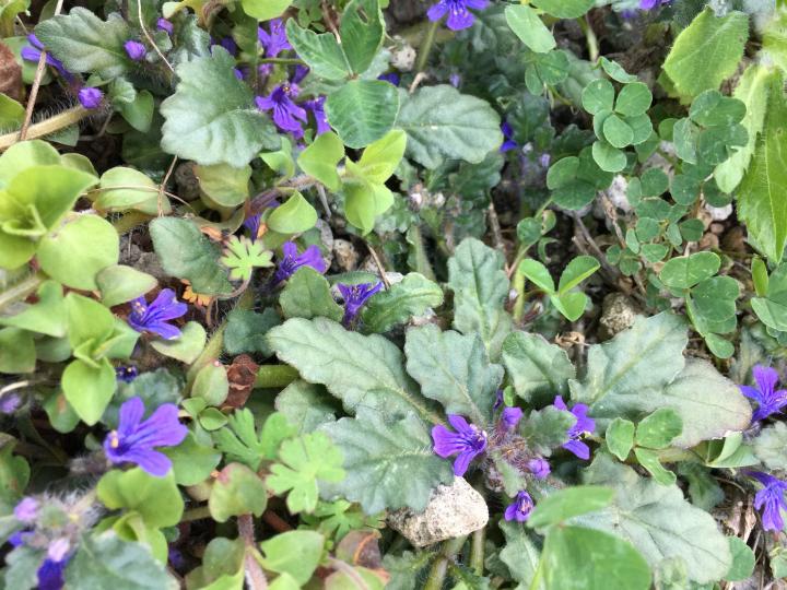キランソウっていうらしい?たぶん、2日前までは無かった。いきなりブワッと咲きました。山野草で、楽天1ポット800円て画像があったけど、マジか?タダで勝手に飛んできて増えたのに!