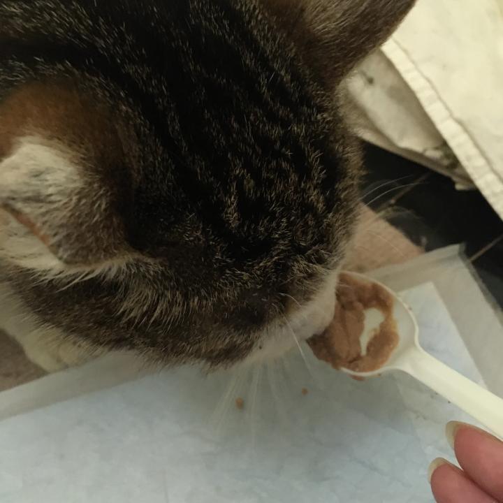 ずぅーっと指からしか舐めてくれなかったチュールを、ついに2本完食したのを機にスプーンに乗せたチュールを食べるよう促したところ、渋々ながら舐めてくれたのが日曜日辺り。