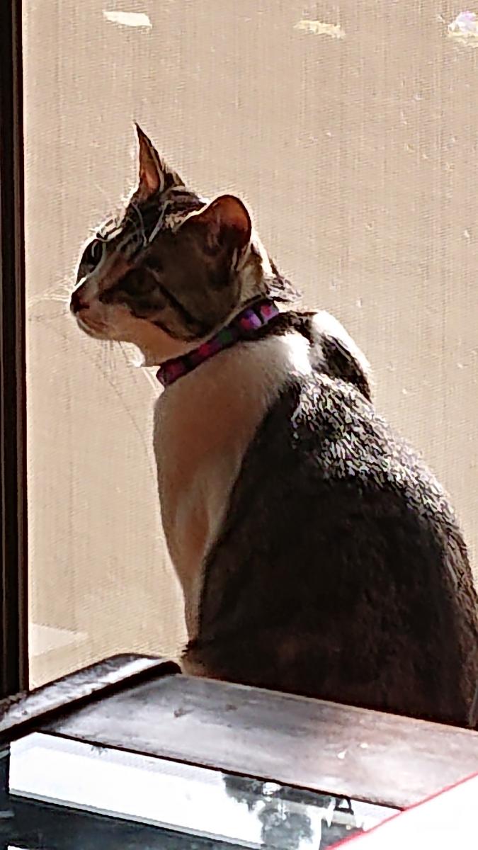 5月15日(木)曇り 今日は天気が悪くなるのだろうか。 少し前まで日がさしていたのだが。 いつものとおり、狭いサッシの隙間から外の様子をうかがうリンちゃんでした。