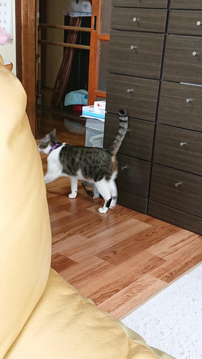 5月8日(木) リンちゃんはカメラ向けると殺気を感じるのかいなくなってしまう。 今日も朝食の後カーテンの向こうでコロコロしていたのに殺気を感じて避難したリンちゃんでした。