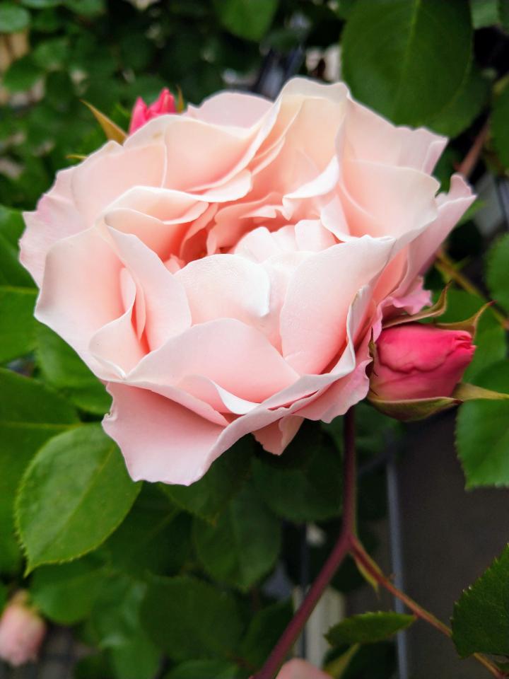 今年はどの薔薇も大きく枝を伸ばして、狭い庭は薔薇の緑で埋め尽くされている状態。