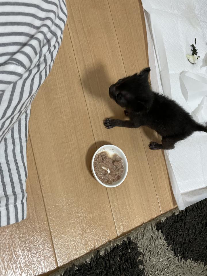 ロイヤルカナンのムース状にミルクを混ぜて昨日は指とスプーンで口の中に少し直ぐ嫌がってミルク😥今日も泣いたので食べさせようとしたら完全無視で😭