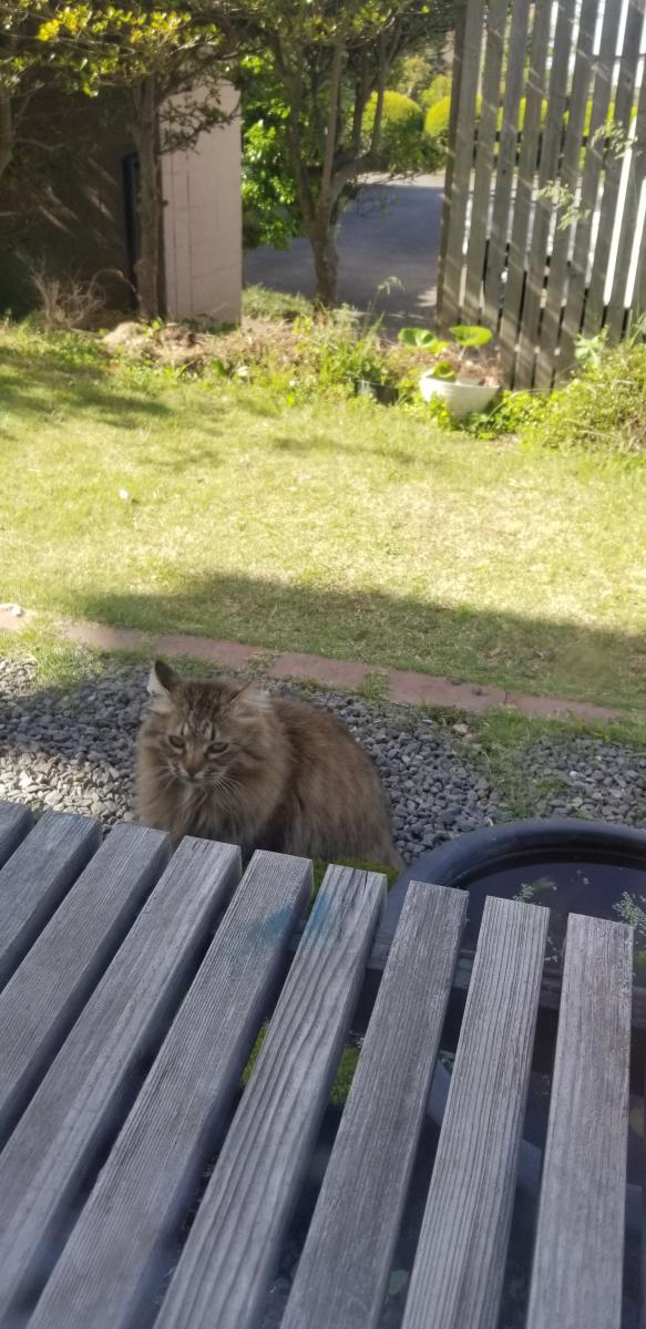ケイティの母親のチャが今朝きました😊チャはいろんなところでご飯もらっているみたい😽ブクブクと太ってました😺