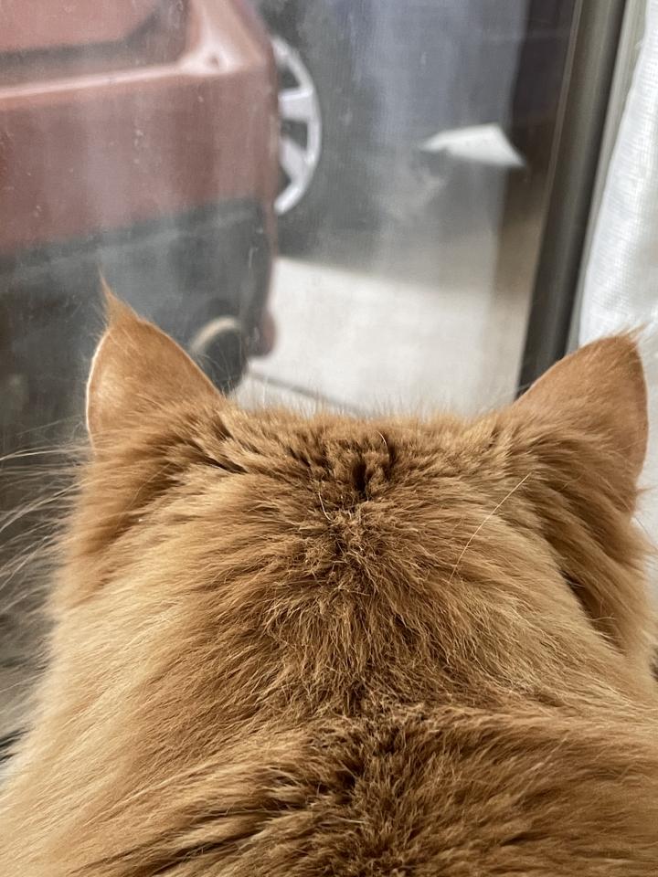 勝手口と掃き出し窓の前を行ったり来たりする茶太郎隊長。