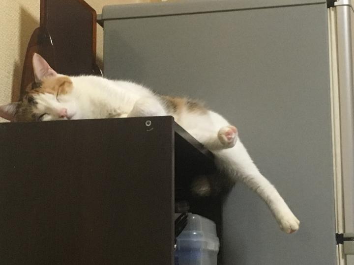 お兄ニャンが昼寝中には膝に乗って甘えるまでに成長しました^ ^