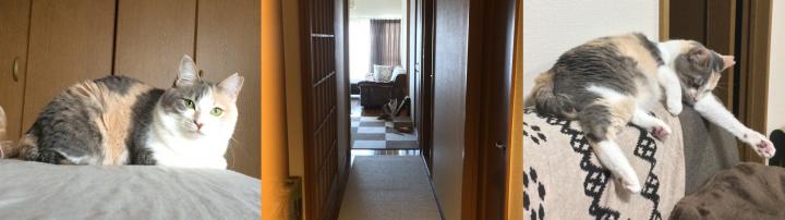 朝起こす。遠くから見送ったり、ソファーで毛繕いしたり。