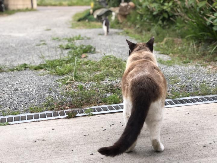 チーにはそっと見守るけど、トラにはつい気安く肩に手をかけては怒られてる白。