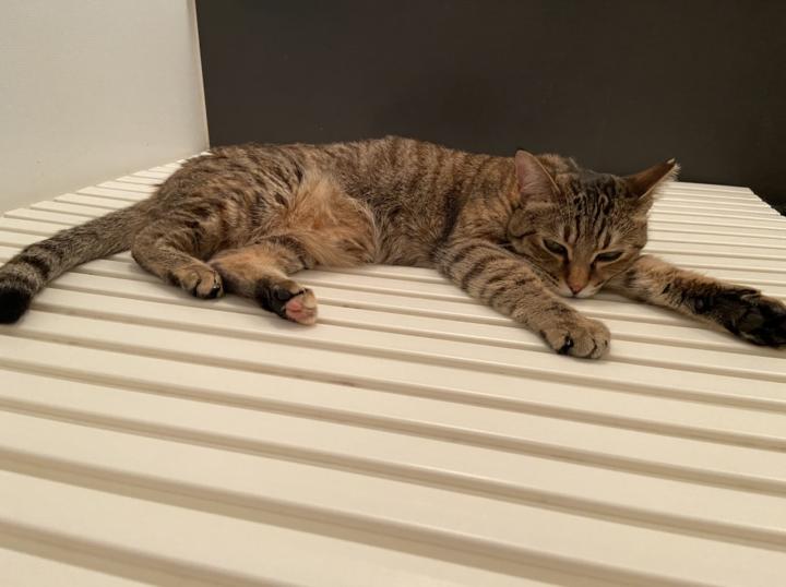 なんやかんやで1時間以上フタの上で過ごしてリラックスしてるリリィ…