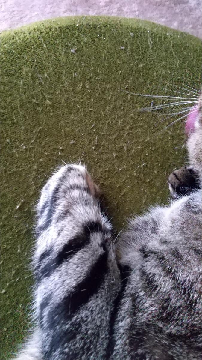 もなかなんですけどね、撫でたりブラッシングするとそこにある床やクッションを舐め舐めします