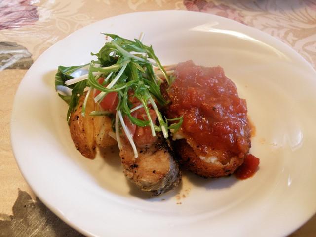 此方は魚とコロッケを盛ったほうです。