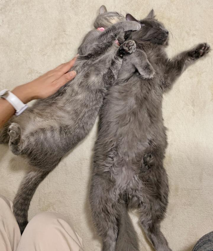 新参植物に対するミーコの反応 と 主人の自慢の品に対する子供たちの反応