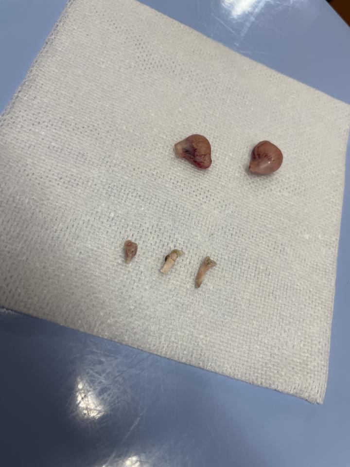 取り出した玉さんと後脚親指も見せてもらえるとのことで見せてもらう。