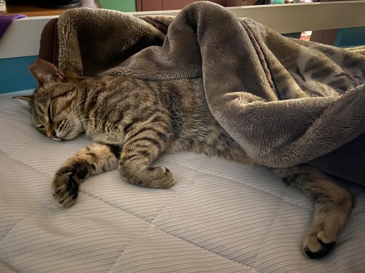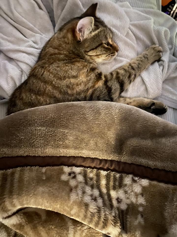 いつもは丸くなって寝てたりするのに、この前から伸びて寝てる😂